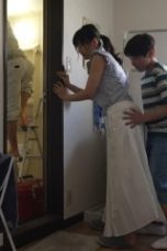 The young man sneaked a look at the neighbor sister